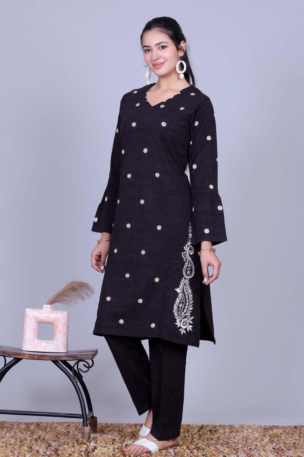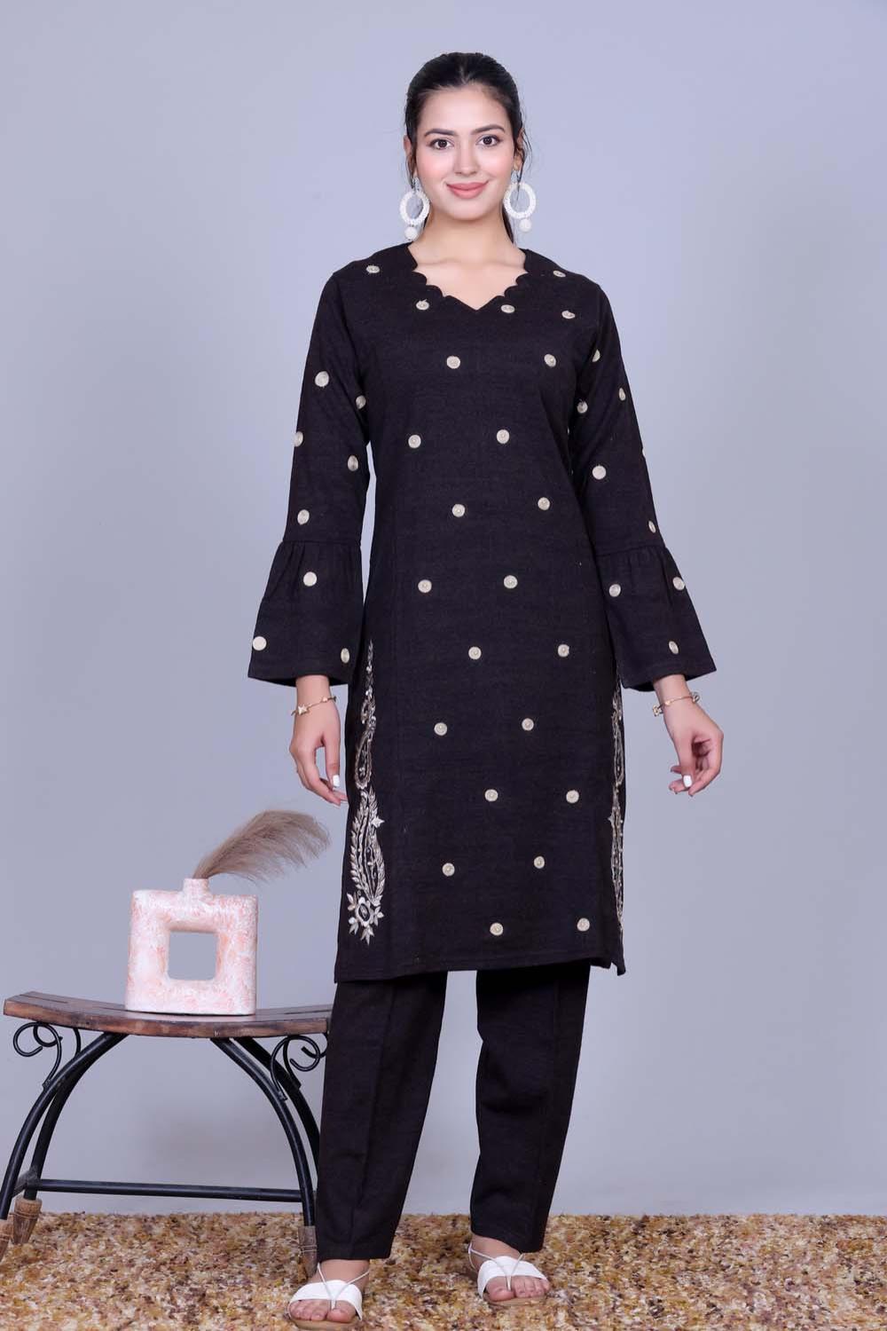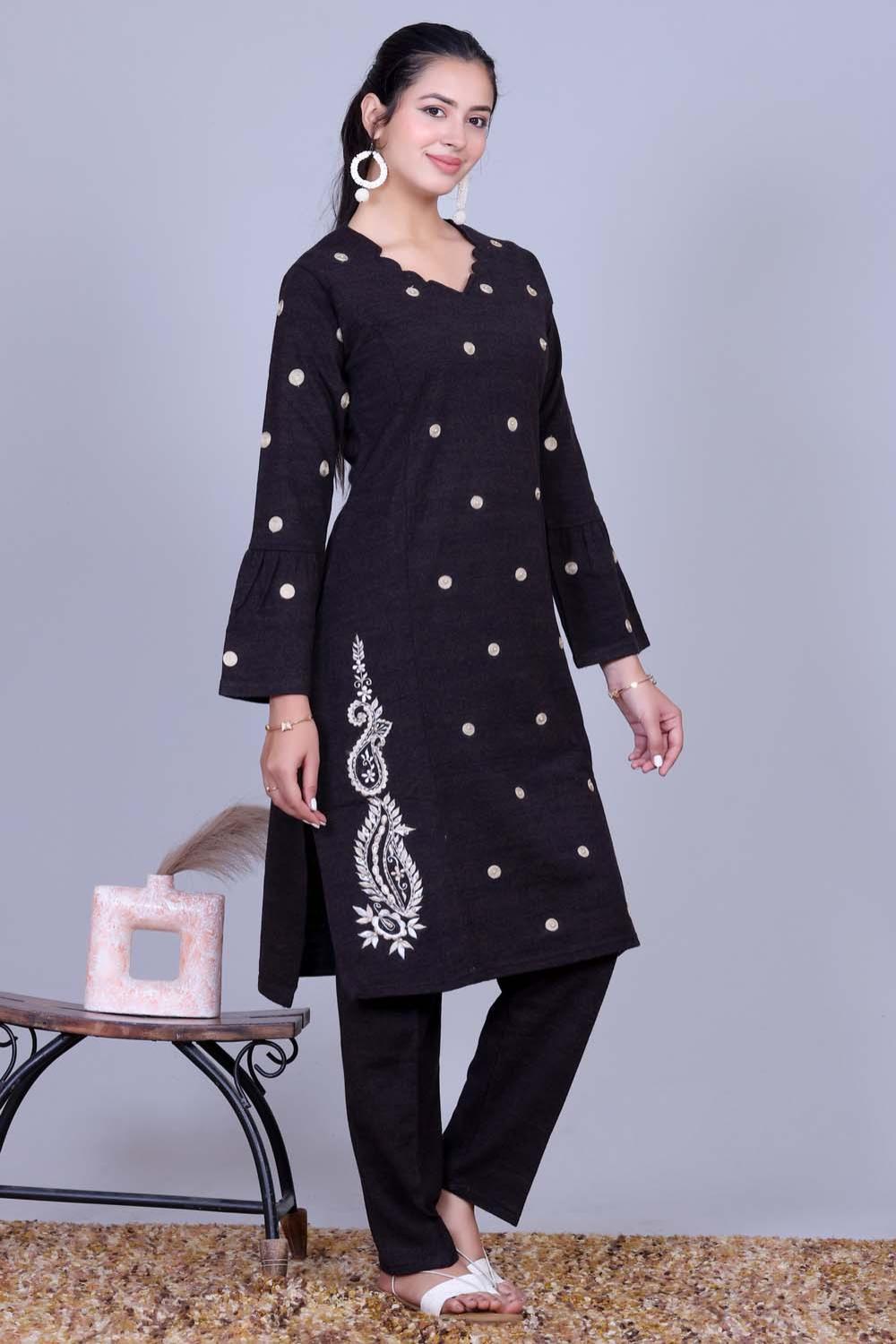 Elevate your ethnic wardrobe with this Black Embroidered Kurta with Pants, designed for women who love timeless elegance with a modern touch.