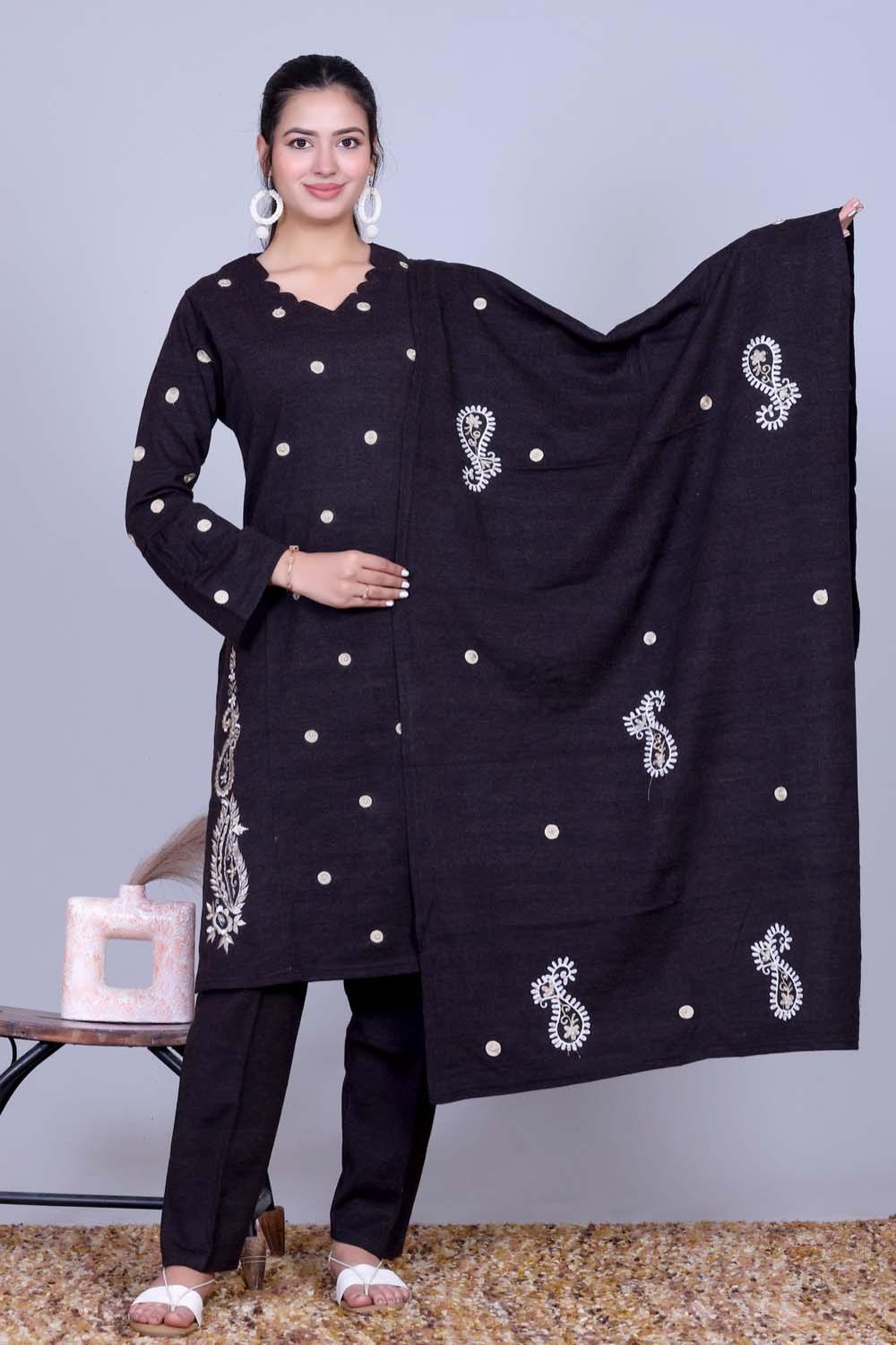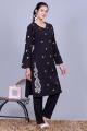 Black Pearl Embroidered Kurti Set with Stole