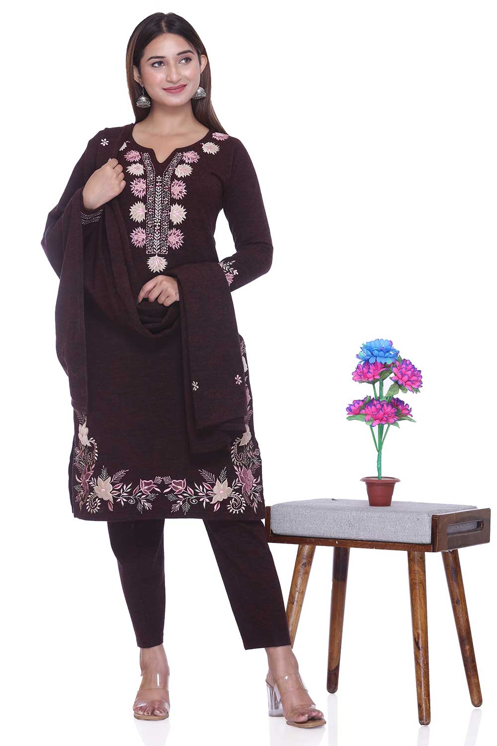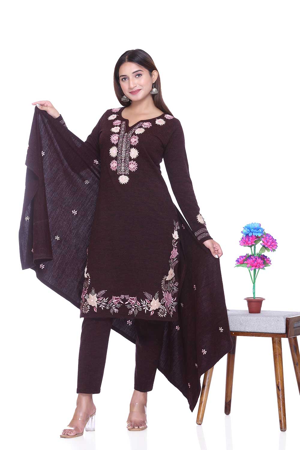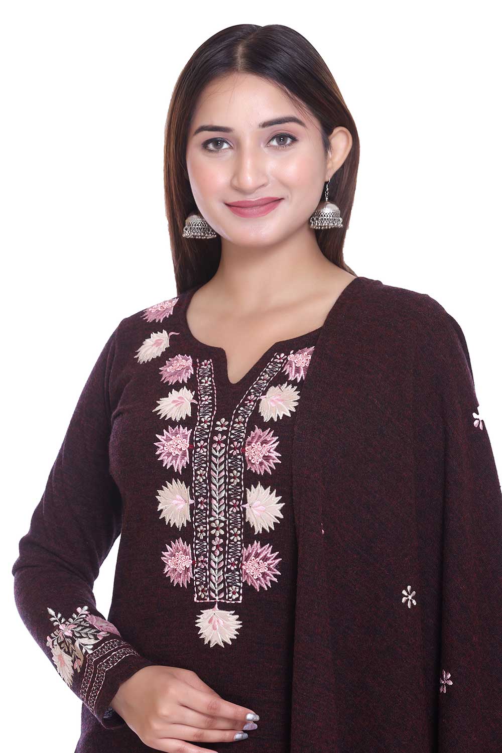 Perfect for festive occasions, family gatherings, or evening outings, this 3-piece set combines warmth, comfort, and traditional Kashmiri-inspired embroidery for a refined ethnic look.