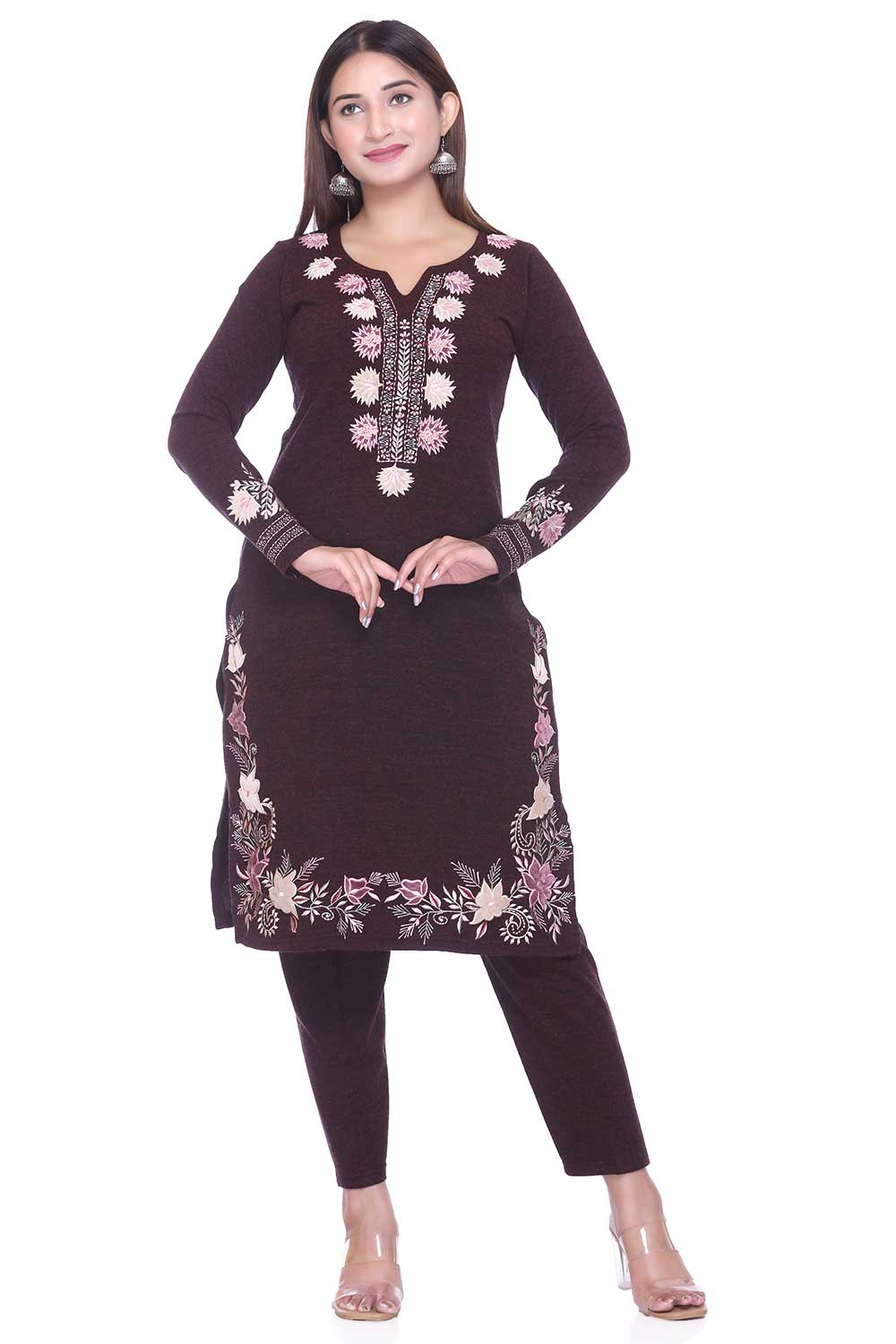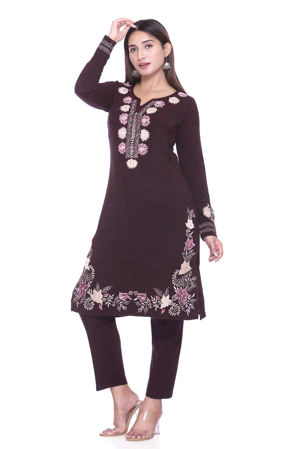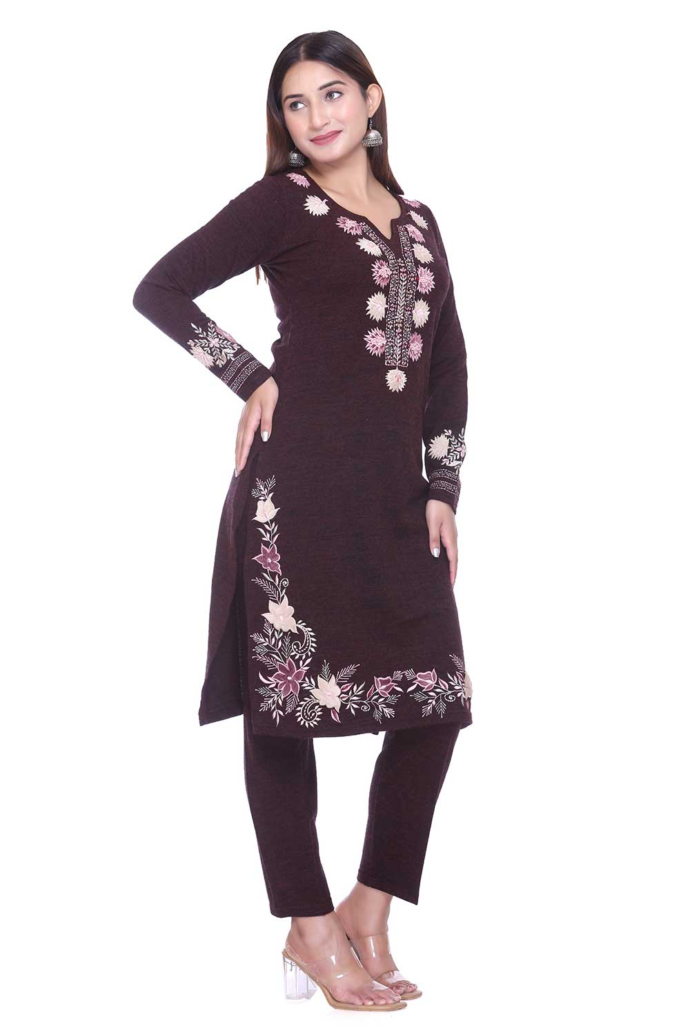 Perfect for festive occasions, family gatherings, or evening outings, this 3-piece set combines warmth, comfort, and traditional Kashmiri-inspired embroidery for a refined ethnic look.