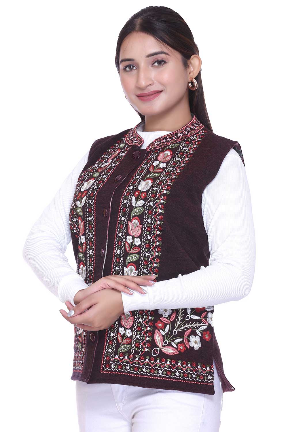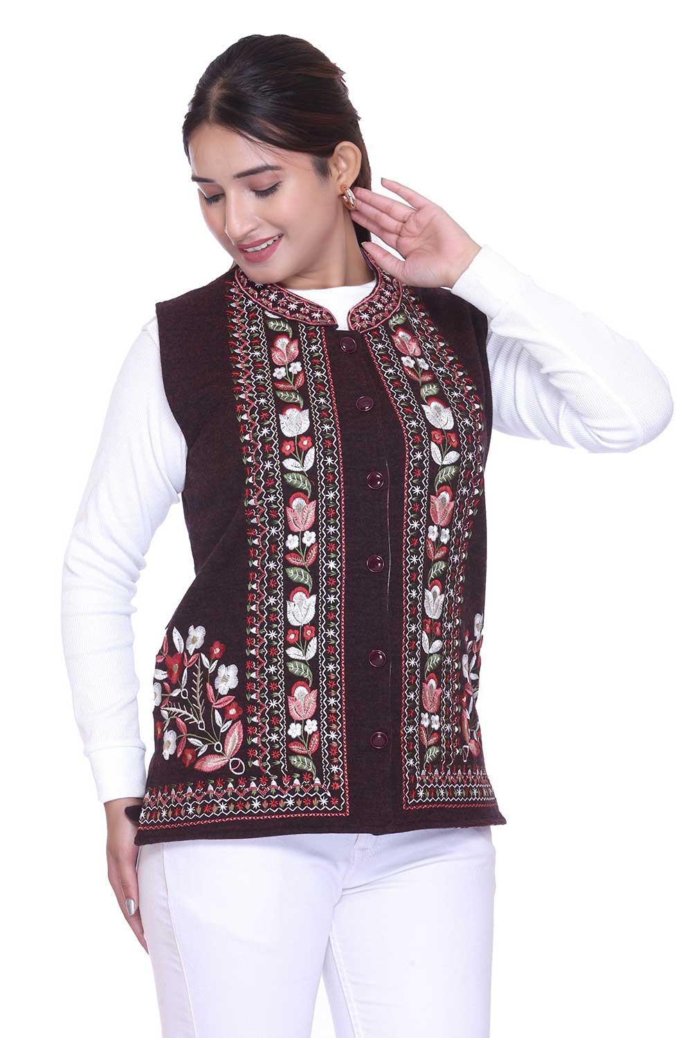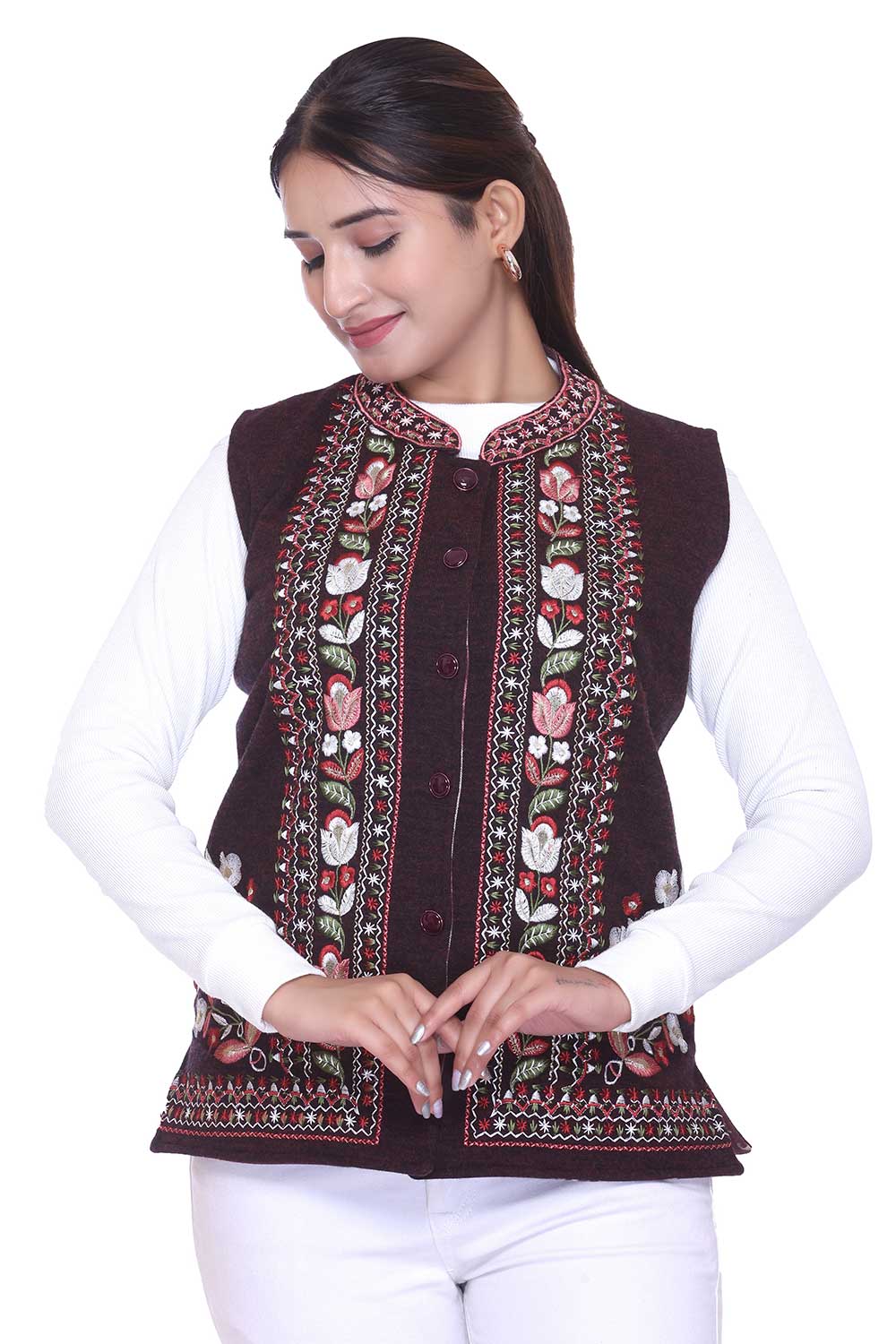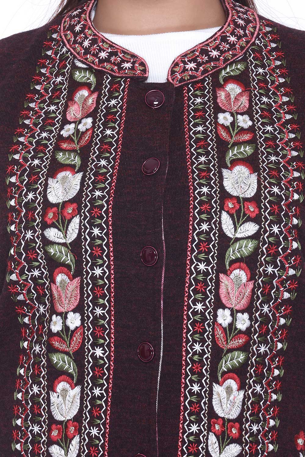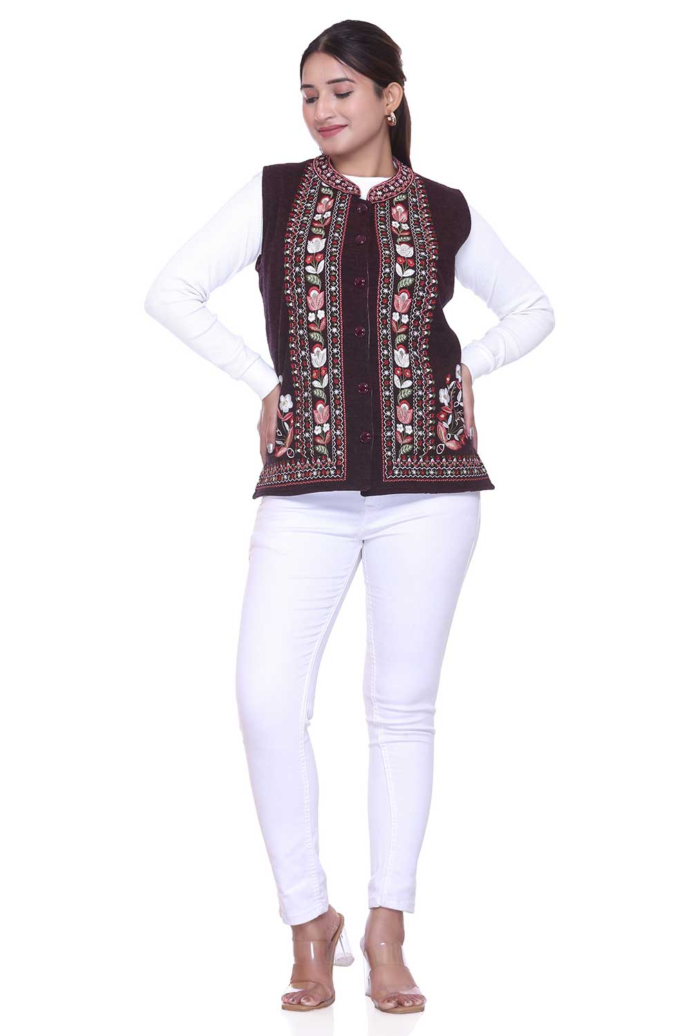 Step into timeless elegance with this Reversible Kashmiri Embroidered Jacket, crafted to perfection for a versatile winter wardrobe. Designed in a rich maroon base with intricate multicolor Kashmiri floral embroidery, this jacket is a perfect blend of tradition and modern chic.